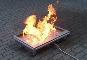 symulator pożaru, dzięki któremu w sposób praktyczny i bezpieczny dla środowiska uczestnik szkolenia może zapoznać się z obsługą gaśnic i koca przeciwpożarowego, a także przećwiczyć gaszenie pożaru.
